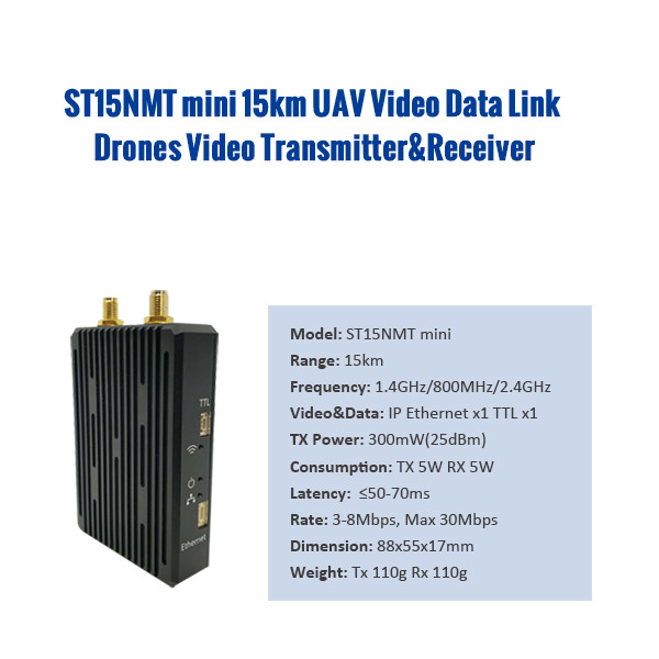 SuntorCD15NMT-mini transmitter receiver is a set of real-time VIDEO transmission system which is specially designed for working with multi-rotor s and fixed wing drone using.